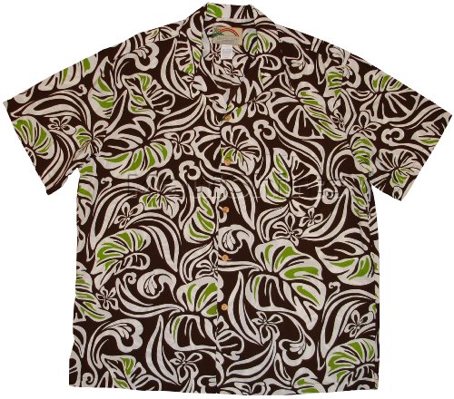 !9# Kailua Men's Hawaiian Aloha Rayon Shirt in Brown - S